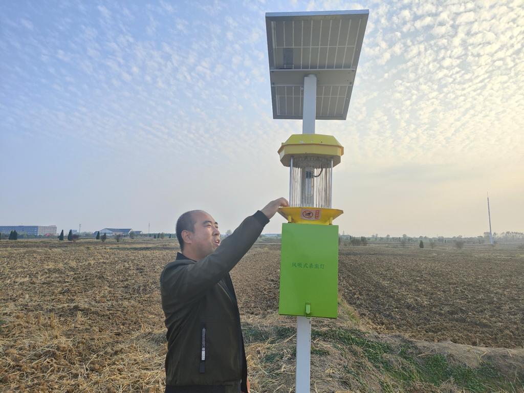 在北大荒農(nóng)服集團(tuán)鳳陽(yáng)小崗農(nóng)業(yè)服務(wù)有限公司生產(chǎn)基地,記者看到遍布田間的新裝備。“這是風(fēng)吸式殺蟲(chóng)燈,今年安裝了50盞,全部采用物理殺蟲(chóng),實(shí)現(xiàn)綠色種植,有利于提高糧食品質(zhì)。”公司總經(jīng)理助理閆大明說(shuō)。