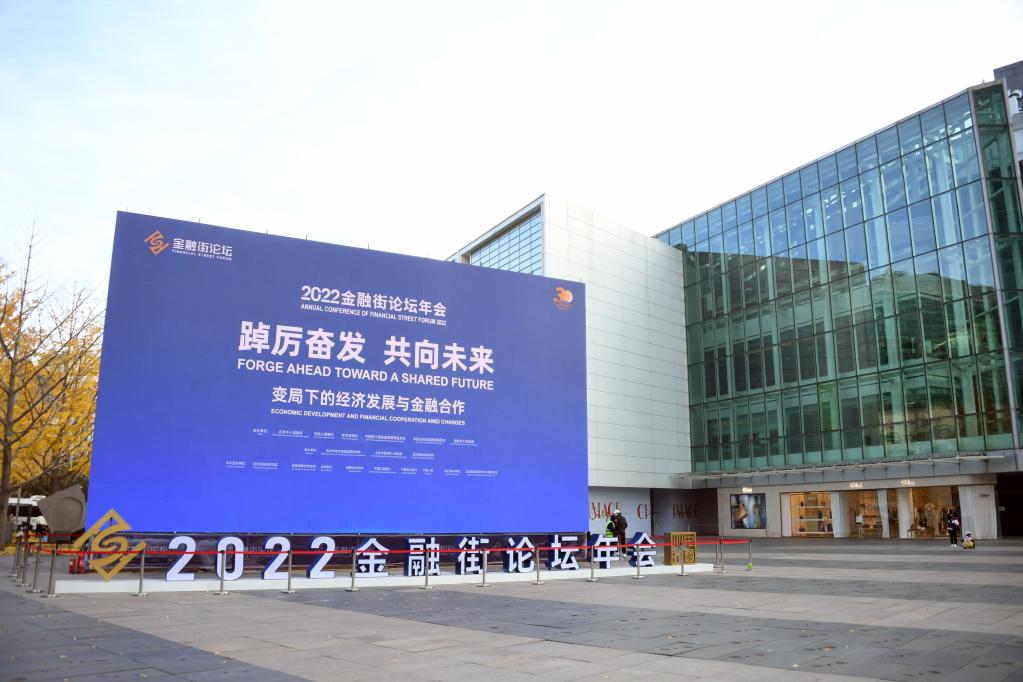 11月21日在北京金融大街附近拍攝的2022金融街論壇年會標識。新華社記者 任超 攝