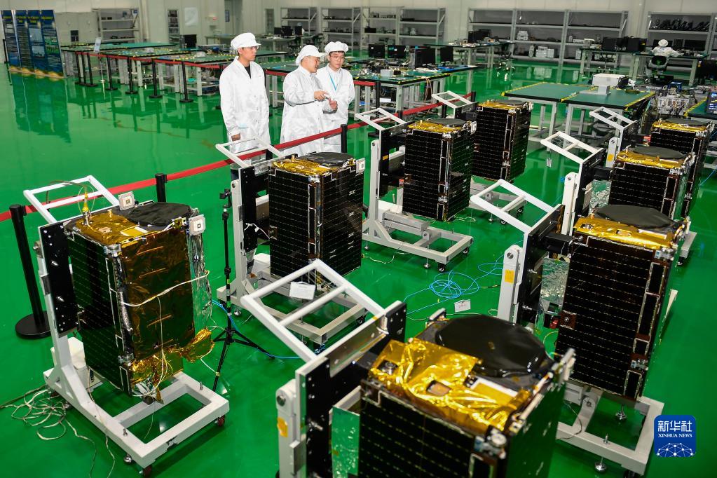 在吉林長春,長光衛(wèi)星技術股份有限公司科研人員在衛(wèi)星總裝測試大廳進行相關測試工作 (2022年10月17日攝)。新華社記者 許暢 攝