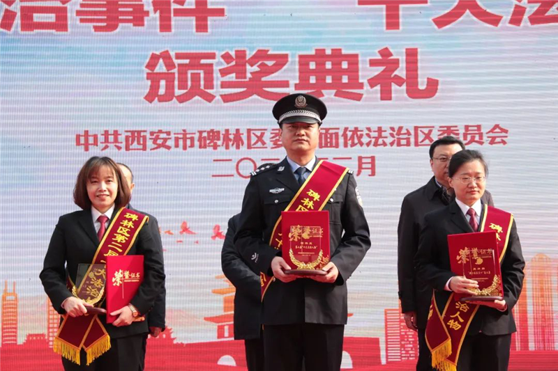2月14日上午,西安市碑林區(qū)委全面依法治區(qū)委員會主辦的碑林區(qū)第二屆“十大法治事件”“十大法治人物”頒獎典禮在鐘樓廣場前隆重舉行。西安市公安局碑林分局成功偵辦的特大網(wǎng)絡(luò)賭博案以及公安碑林分局太白路派出所所長丁保健分別榮獲“十大法治事件”和“十大法治人物”。此外,作為依法治區(qū)委員會成員單位,公安碑林分局在現(xiàn)場通過設(shè)置、案例解讀、現(xiàn)場互動解答的方式進(jìn)行了反詐以及普法宣傳活動。
