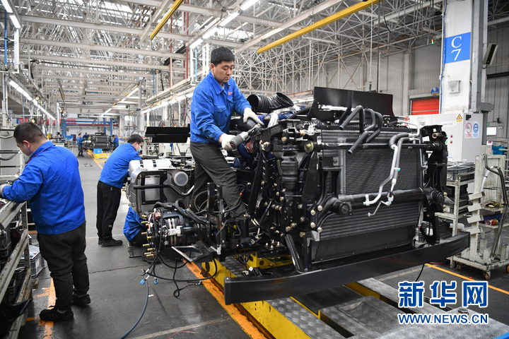 工人在陜汽控股集團(tuán)重卡總裝車間裝配零件。 新華社記者 邵瑞 攝