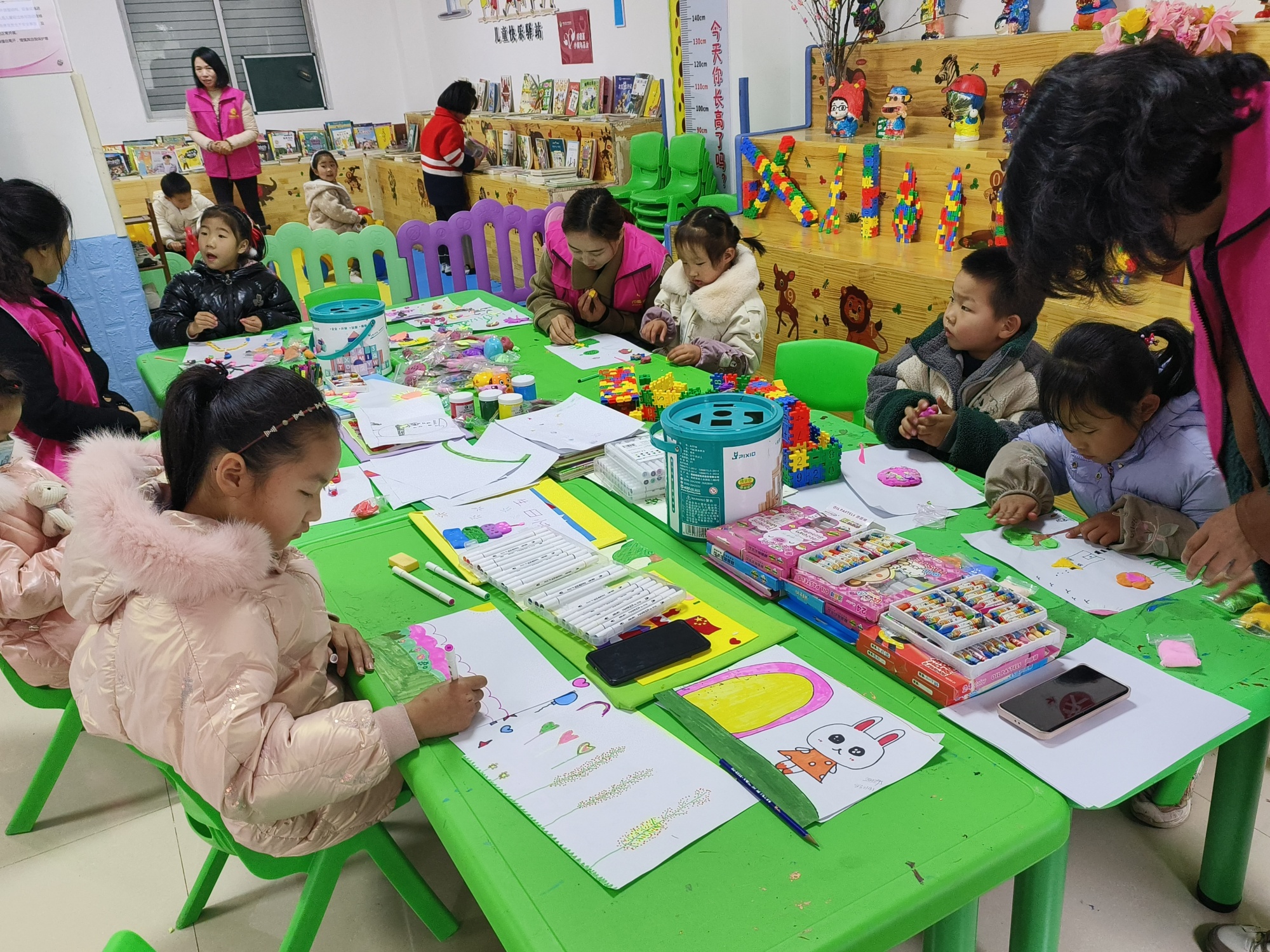 記者走進婦女兒童之家,志愿者們正帶領(lǐng)一群小朋友,有的指導繪畫,有的講繪本故事,有的在陪孩子們玩玩具。“我是咱社區(qū)幼兒園的老師,自愿申請來到這里。我們這有14個志愿者,大家利用空閑時間來陪伴這些留守兒童。”志愿者黃顏筱介紹道,“一般放學后等兩個小時左右家長們就都接走了。”