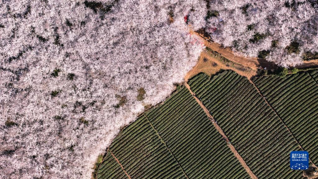 3月21日拍攝的貴州省貴安新區(qū)櫻花園(無人機(jī)照片)。新華社記者 陶亮 攝