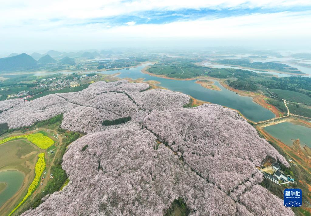 這是3月21日拍攝的貴州省貴安新區(qū)櫻花園(無人機(jī)全景照片)。新華社記者 楊文斌 攝