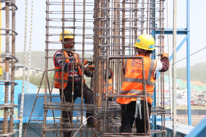 工作人員綁鋼筋
