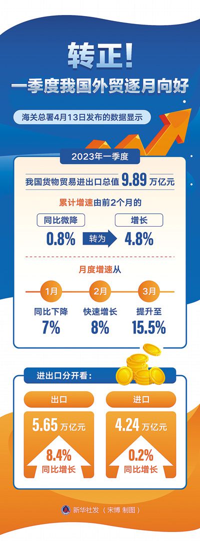 -7%、8%、15.5%,一季度,中國進出口增速逐月提升——保穩(wěn)提質,中國外貿加速跑。