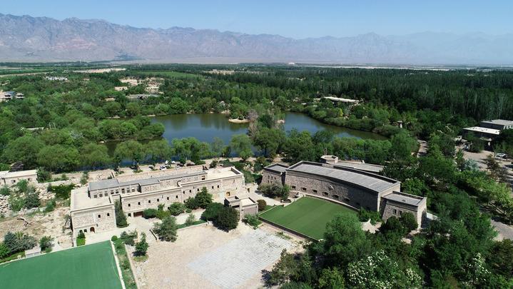 走進(jìn)位于志輝源石酒莊內(nèi)的賀蘭山運(yùn)動(dòng)休閑公園,樹木蔥郁、湖光粼粼,很難想象這里曾是飛沙走石的賀蘭山采礦塌陷區(qū)。志輝源石酒莊莊主袁園說,自2008年投身葡萄酒產(chǎn)業(yè)以來,酒莊已在戈壁荒灘上種植了3000畝釀酒葡萄、9000畝林木,并先后對(duì)6000畝廢棄礦區(qū)進(jìn)行了生態(tài)修復(fù)。