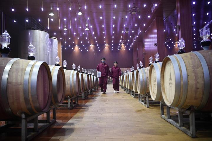 風(fēng)從賀蘭山深處吹來,拂過山腳下一眼難望到頭的葡萄園。一座占地面積達(dá)5000平方米的酒窖里,自動(dòng)化設(shè)備保持四季恒溫恒濕,2000個(gè)橡木桶鱗次櫛比,國(guó)際葡萄酒大賽獲獎(jiǎng)證書一個(gè)挨著一個(gè),擺滿了十幾米長(zhǎng)的陳列架。