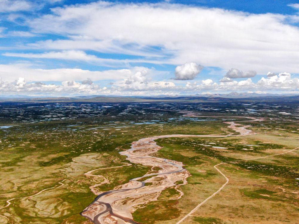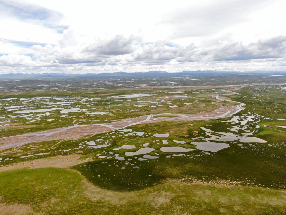 這是2022年7月27日在長江源地區(qū)拍攝的囊極巴隴河道,長江正源沱沱河和南源當(dāng)曲在此匯合。
