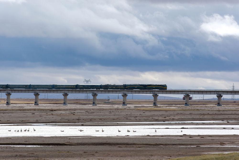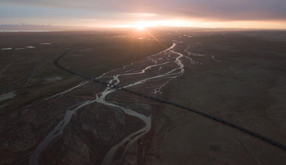 6月16日,一列火車經(jīng)過長江源地區(qū)的楚瑪爾河。