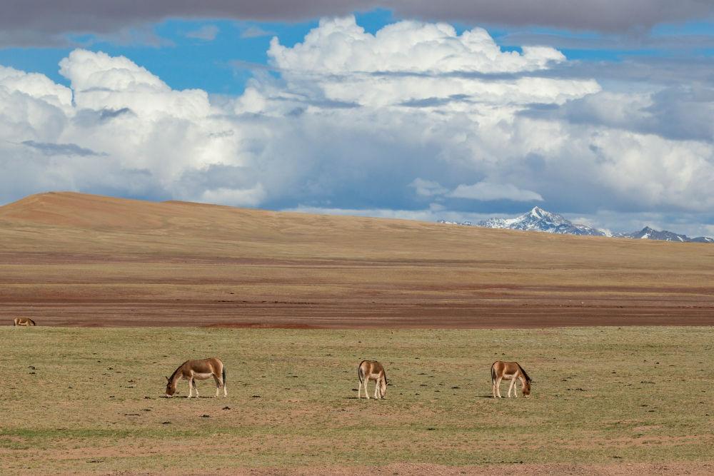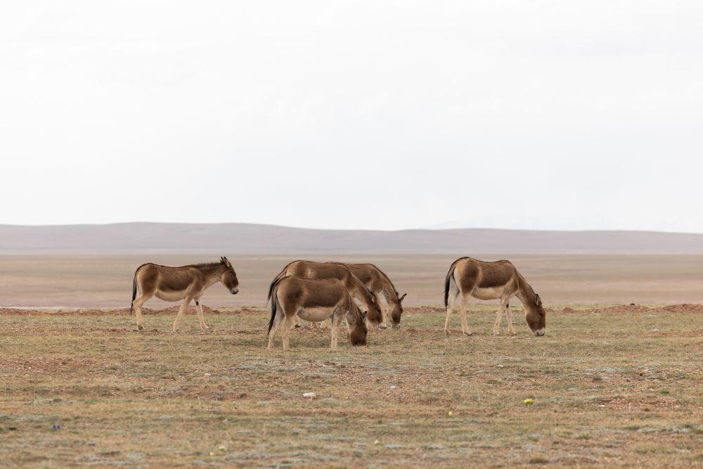 6月15日,在長江源地區(qū)的楚瑪爾河附近,幾只藏野驢在覓食。
