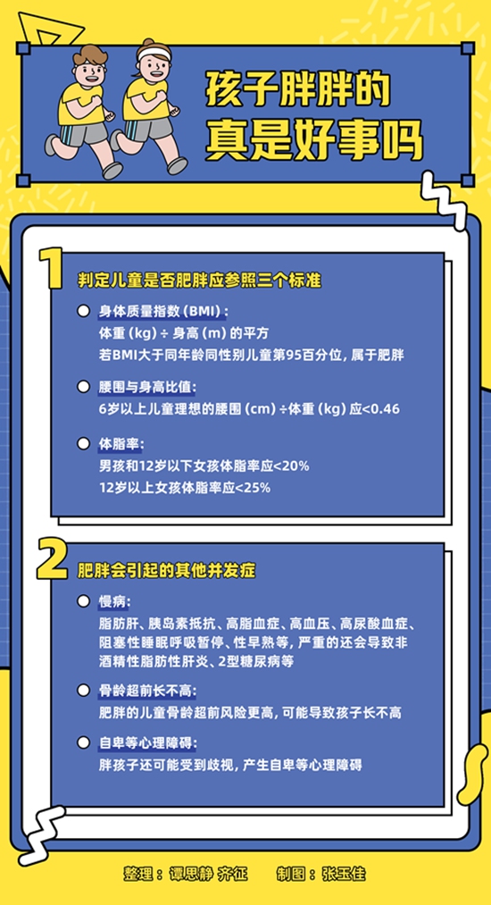 兒童肥胖比“中年發(fā)福”危害更大。兒童期肥胖是引起成人肥胖及各種并發(fā)癥的危險因素之一,并且孩子成年后患慢性疾病的風(fēng)險概率增加,特別是心血管疾病和代謝性疾病。