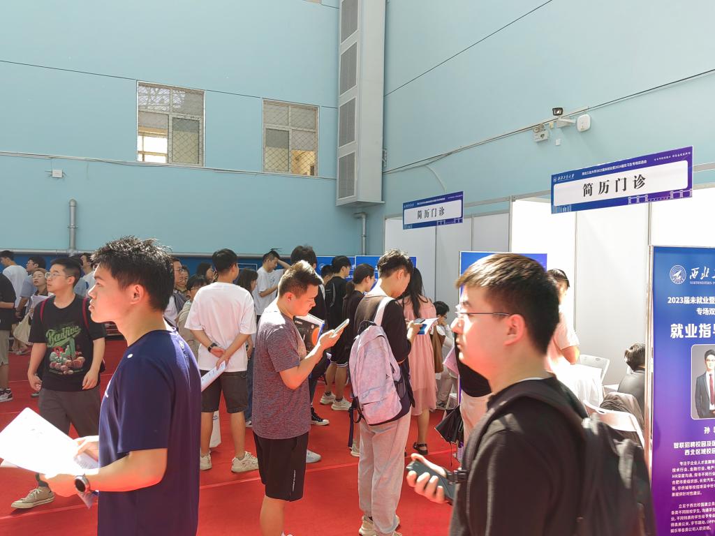 西北工業(yè)大學舉辦的招聘會上,學生在簡歷門診咨詢。