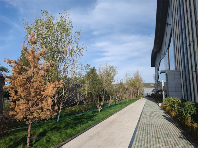 本次景觀提升工程主要對職工餐廳、文體中心北側(cè)的破損場地進(jìn)行了破除,對地平進(jìn)行修整后,重新種植了白皮松、叢生五角楓、白蠟、紅瑞木、水蠟等苗木。在留出人行通道的基礎(chǔ)上,設(shè)計了塑膠跑道,其余部分鋪設(shè)了草坪,并對區(qū)域圍墻進(jìn)行了修護(hù)??紤]到職工鍛煉休閑的實際需求,本次景觀提升工程還新安裝了一座公共廁所,設(shè)置了專門的吸煙區(qū)。