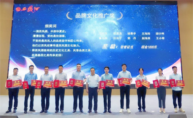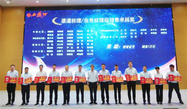 西鳳股份公司財務(wù)管理部部長陳宏利為業(yè)務(wù)經(jīng)理銷售卓越獎獲得者頒發(fā)榮譽(yù)證書與獎金