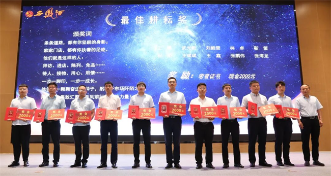 西鳳股份公司市場管理部部長齊紅軍為最佳耕耘獎獲得者頒發(fā)榮譽(yù)證書與獎金