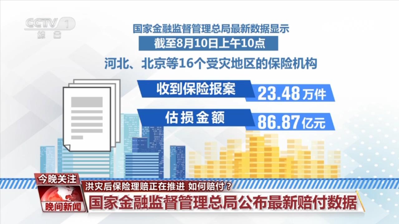 國家金融監(jiān)督管理總局最新數(shù)據(jù)顯示,截至8月10日上午10時,河北、北京等16個受災地區(qū)的保險機構收到保險報案23.48萬件,估損金額86.87億元;目前已賠付案件9.23萬件,賠付金額8.31億元。