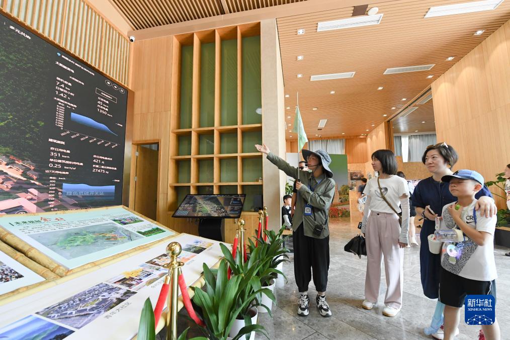 8月11日,游客在安吉余村未來鄉(xiāng)村展館了解當地綠色用能情況。