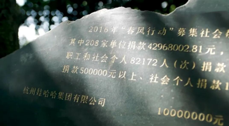 自2011年起,娃哈哈聯(lián)合杭州市總工會“春風(fēng)行動”辦公室,開啟了“娃哈哈·春風(fēng)助學(xué)”專項援助項目,主要資助建檔困難家庭子女就讀國內(nèi)全日制普通高校、成人高校、高等職業(yè)學(xué)校。自設(shè)立以來,累計幫助5萬多名困難學(xué)生走進大學(xué)校園。