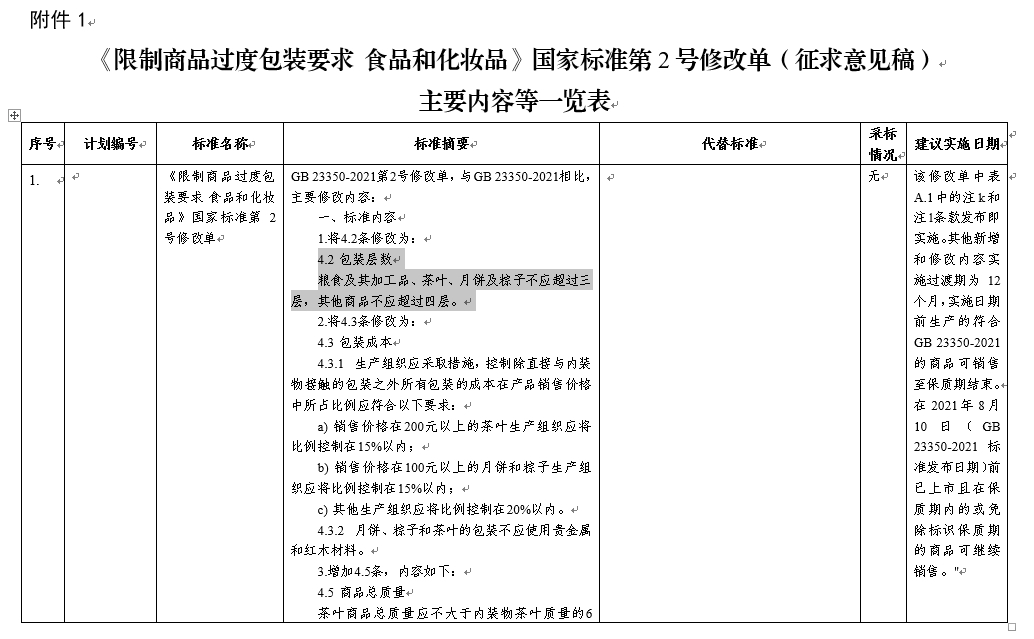 如有不同意見,請(qǐng)?jiān)诠酒陂g填寫《強(qiáng)制性國(guó)家標(biāo)準(zhǔn)意見反饋表》,通過(guò)電子郵件發(fā)送至KJBZ@miit.gov.cn(郵件主題注明:《限制商品過(guò)度包裝要求 食品和化妝品》強(qiáng)制性國(guó)家標(biāo)準(zhǔn)第2號(hào)修改單征求意見稿公示反饋)。