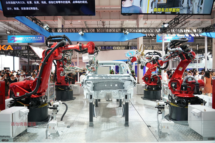 強(qiáng)勁靈活的手腕,高扭矩的設(shè)計(jì),4個(gè)紅色的機(jī)械臂上下?lián)]舞,為汽車車身進(jìn)行點(diǎn)焊作業(yè)……在2023世界機(jī)器人大會(huì)上,沈陽(yáng)新松公司針對(duì)汽車工業(yè)研發(fā)的白車身點(diǎn)焊機(jī)器人工作站引人注目。