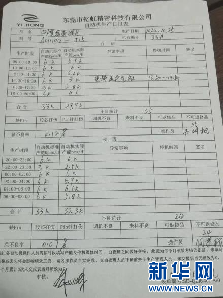 工人過(guò)去用紙質(zhì)表格,記錄生產(chǎn)情況。新華網(wǎng)發(fā)(企業(yè)供圖)