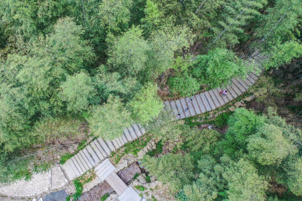 圖為游客在藍山縣藍山谷景區(qū)竹林內(nèi)游玩。(彭華 攝)