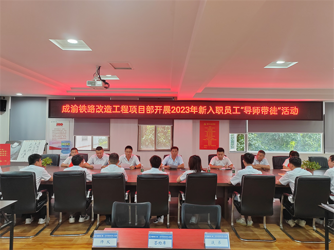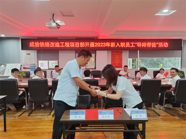 8月25日下午,中鐵一局七公司成渝項(xiàng)目部舉行導(dǎo)師帶徒結(jié)對(duì)儀式,項(xiàng)目領(lǐng)導(dǎo)班子、各部室負(fù)責(zé)人及主要管理人員出席活動(dòng)(重點(diǎn)對(duì)象為新入職大學(xué)生),支部書(shū)記王濤主持儀式。