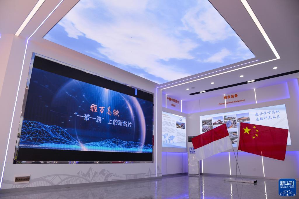 這是7月20日在印度尼西亞萬(wàn)隆德卡魯爾車站旁拍攝的中國(guó)中鐵印尼雅萬(wàn)項(xiàng)目經(jīng)理部展廳內(nèi)景。新華社記者 徐欽 攝