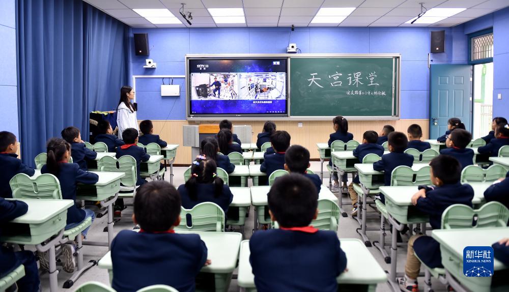 9月21日,在安徽省合肥市安慶路第三小學大楊分校,學生收看“天宮課堂”第四課。新華社發(fā)(葛傳紅攝)