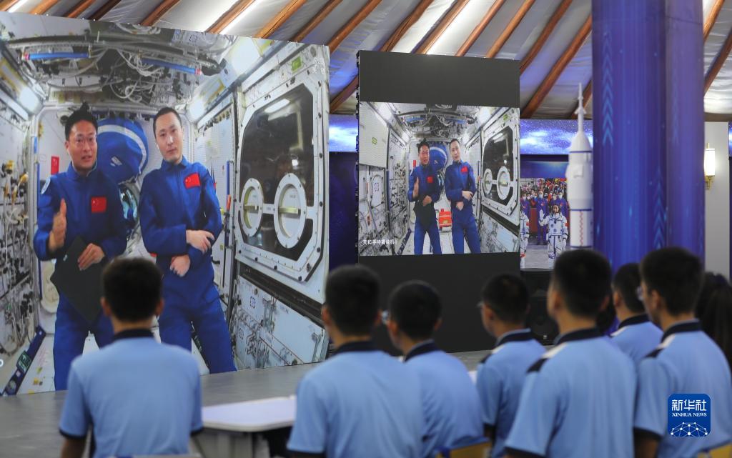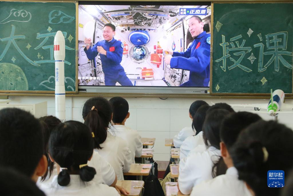新華社北京9月21日電 9月21日下午,“天宮課堂”第四課在中國空間站開講,新晉“太空教師”景海鵬、朱楊柱、桂海潮為廣大青少年帶來一場精彩的太空科普課,這是中國航天員首次在夢天實驗艙內進行授課。