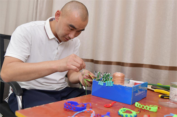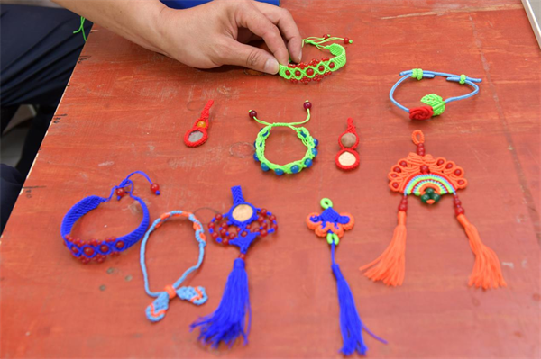 在一張約一平方米的桌子上,擺滿了小燈籠、小手鏈、小掛件……看著如此精致、細小的工藝品,一位心靈手巧的姑娘形象便會映入眼簾。
