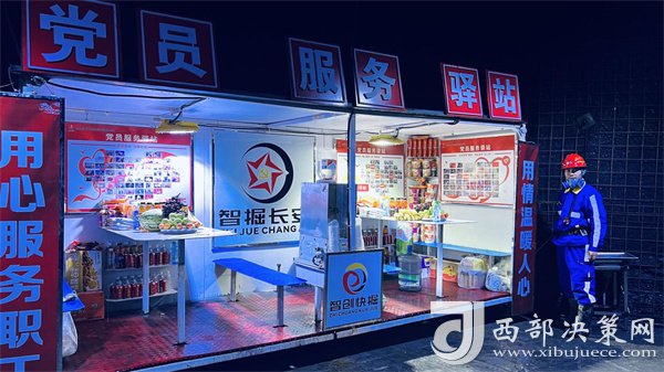 走進(jìn)掘進(jìn)三工區(qū)工作面休息聯(lián)巷,一個(gè)“黨員服務(wù)驛站”格外醒目,不同與采煤工作的是,掘進(jìn)工作面的服務(wù)站屬于移動(dòng)服務(wù)站,便于隨著巷道的延伸隨時(shí)移動(dòng)。