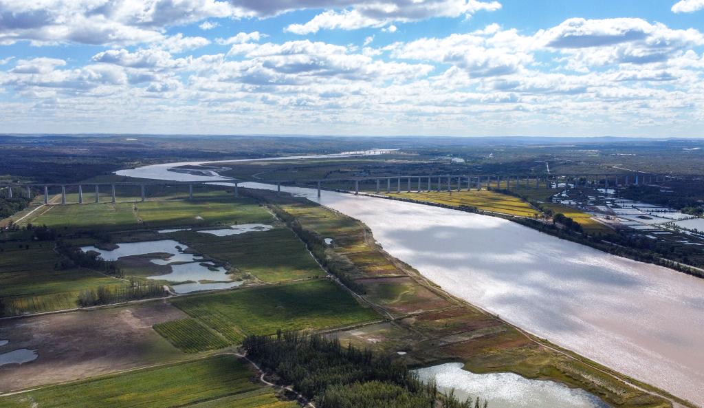 這是2022年9月22日在呼和浩特市托克托縣拍攝的黃河風(fēng)光(無(wú)人機(jī)照片)。新華社記者 貝赫 攝