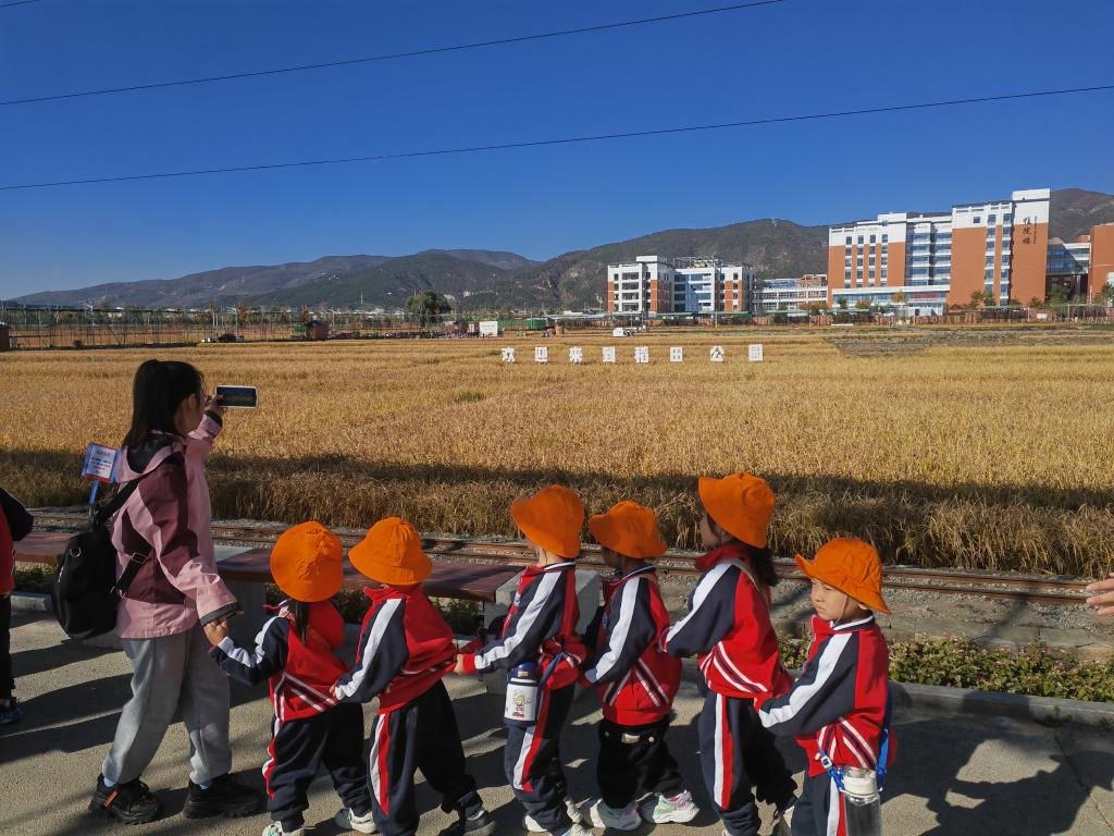 10月20日,幼兒園師生來稻田公園參觀游玩。新華社記者 魏飚 攝