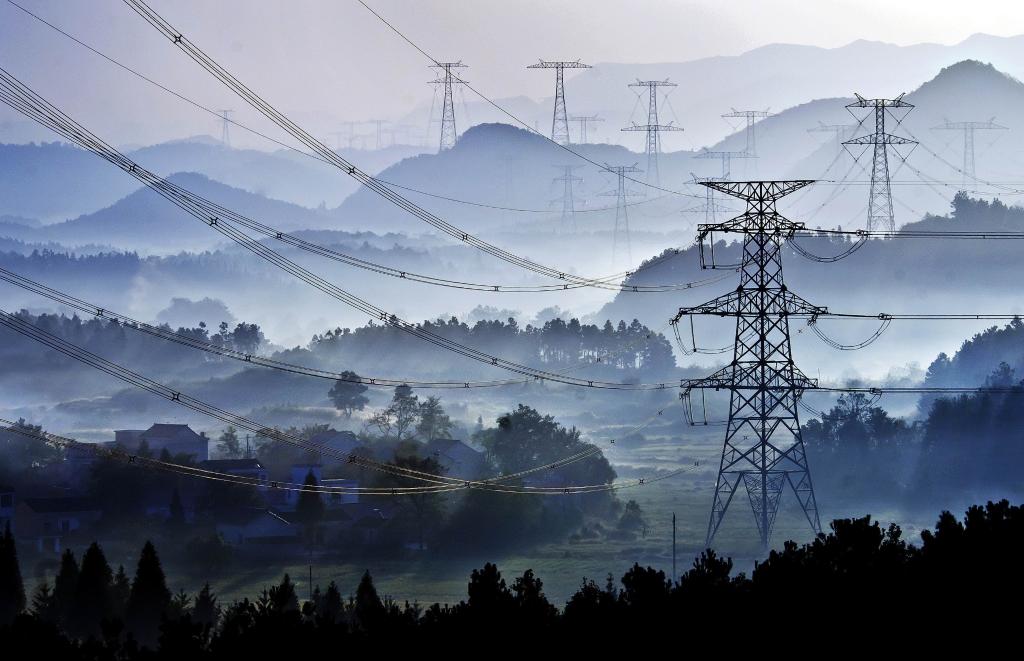 安徽省池州市青陽(yáng)縣境內(nèi)的特高壓輸電線路。(資料圖片)