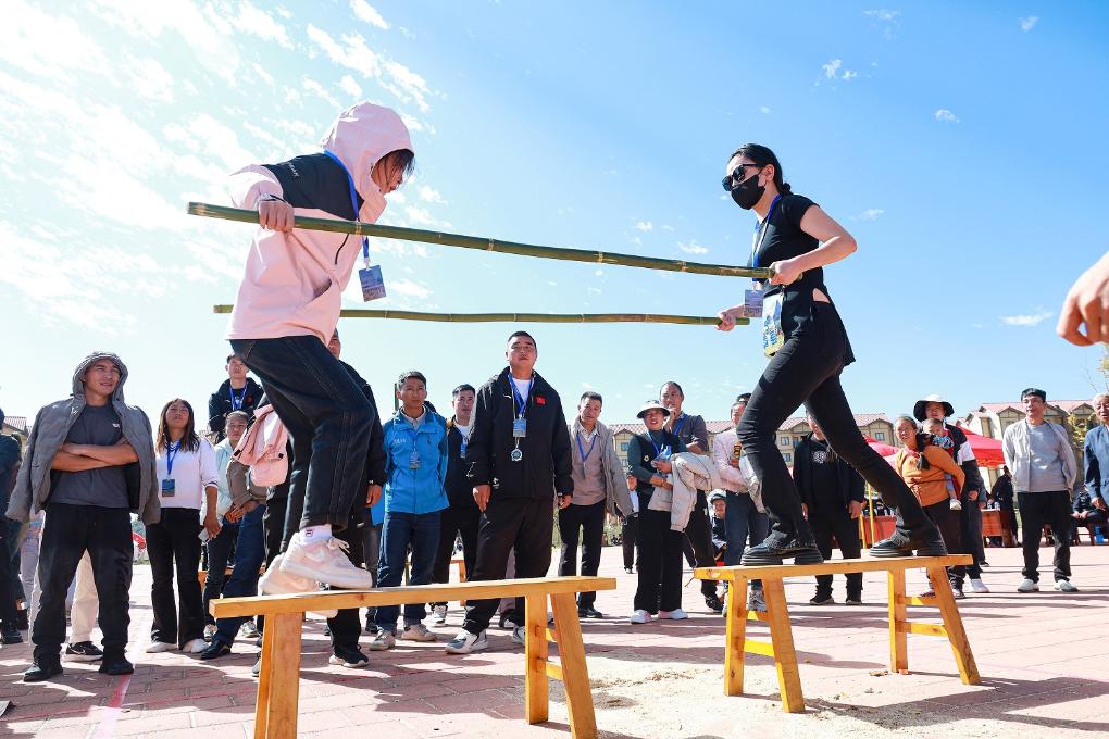 活動現(xiàn)場還舉行了凳上大比拼、漂洋過海塞龍珠、扭扁擔(dān)、剝玉米粒、長筷夾洋芋、挑水慶豐收……鄉(xiāng)村趣味運(yùn)動會把日常的農(nóng)事活動與體育運(yùn)動相融合,具有濃郁的鄉(xiāng)村特色,規(guī)則雖簡單,但趣味性十足,既是技藝與速度的比拼,又考驗(yàn)團(tuán)隊(duì)協(xié)作能力。