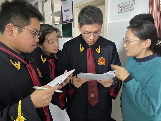 諶濤在自己授課的班級(jí)找了兩名“律師”,他們花一節(jié)自習(xí)課的時(shí)間,仔細(xì)研究了原告的“起訴狀”,完成“答辯狀”并提交給學(xué)生法庭。