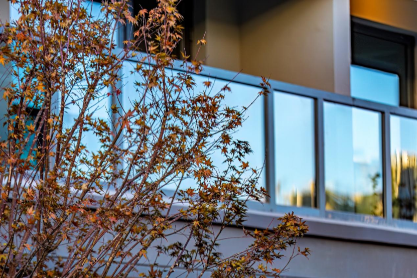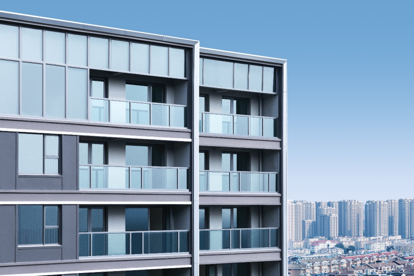 立面打造上,桂語朝陽是綠城創(chuàng)新Design系立面在青島的首次落地,實(shí)景下的建筑立面簡潔、俊朗,現(xiàn)代極簡的建筑工藝美學(xué)呈現(xiàn)極具辨識度的扁平化質(zhì)感,超纖細(xì)金屬鋁板邊框和大面積玻璃的創(chuàng)新應(yīng)用,力求營造溫暖沉穩(wěn),輕奢典雅的立面調(diào)性。而且這種建筑外墻材質(zhì)造價(jià)很高,但是可以使樓體始終保持“歷久彌新”的感覺。