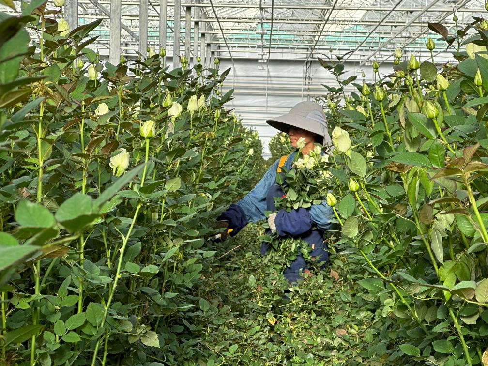 脫去厚重的外套,張小紅換上輕便的工作服,戴好手套和帽子,拿起大剪刀,開(kāi)始了一天的剪花工作。只見(jiàn)她走進(jìn)幽深窄密的綠色長(zhǎng)廊,直到看不見(jiàn)人影。少許時(shí)刻,她便抱著一大捧玫瑰走了出來(lái),新鮮的露水從嬌嫩的花瓣上滴落。平板車?yán)锸M清水,她和其他工人們一起,將新鮮采摘的玫瑰用網(wǎng)紗細(xì)心地裹好,然后放置水中。再過(guò)不久,這些玫瑰將被運(yùn)往全國(guó)各地甚至海外,為人們帶來(lái)愉悅和享受。