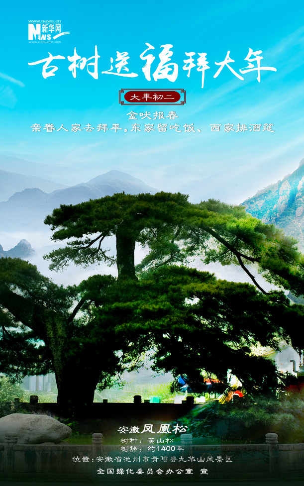 今年春節(jié),新華網(wǎng)聯(lián)合全國綠化委員會辦公室,策劃推出“古樹送福拜大年”系列海報(bào)12張,選取寓意喜樂吉祥、文化底蘊(yùn)深厚、景觀自然絕美的古樹名木,結(jié)合中國春節(jié)習(xí)俗,給廣大網(wǎng)友拜年啦!