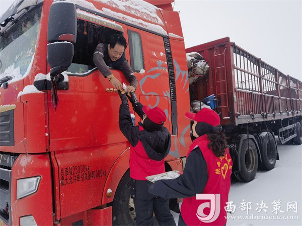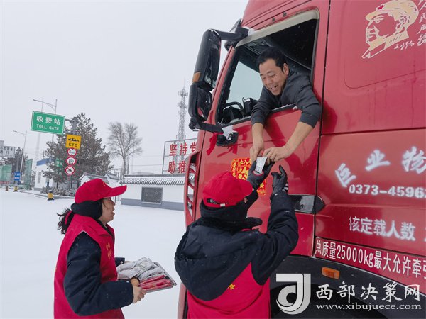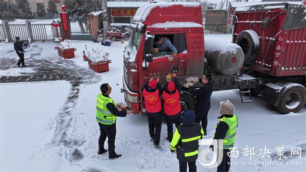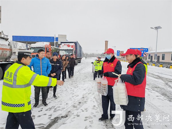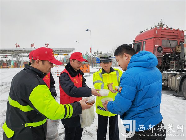 這有小米粥、炸油餅,雞蛋還熱乎著……”榆靖分公司志愿者暖心地喊著話。“行動是最好的破冰劑”,志愿者們?yōu)楦咚贉袈每退腿ナ澄铮旓L(fēng)冒雪分發(fā)給滯留在收費站的司乘人員。一件件穿梭在寒風(fēng)中的“紅馬甲”此刻成為了冬日里最美的“志愿紅”,讓群眾在寒意逼人的天氣里感受到了一份特別的溫暖。大家紛紛表示感謝,“熱粥、小菜、松軟的饅頭下肚,全身都熱乎了。”一名滯留司機真誠地感激道。