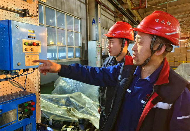 除夕一大早,姜肖航就跟著師傅任永峰在車間內(nèi)檢修設備。