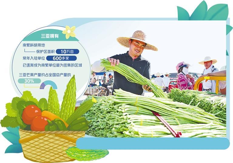 三亞蔬果業(yè)繁榮有賴于南繁種業(yè)基地的賦能。三亞擁有南繁科研用地保護(hù)區(qū)面積10萬畝,常年入駐單位達(dá)600多家,已逐漸成為南繁單位最為密集的區(qū)域。每年冬春,來自全國各大農(nóng)業(yè)科研機(jī)構(gòu)的6000名專家人才匯聚于此,田地間、實(shí)驗室、人才小院處處可見他們的身影,培育出最適合生長在三亞市崖州區(qū)這片土地上的“致富苗”。