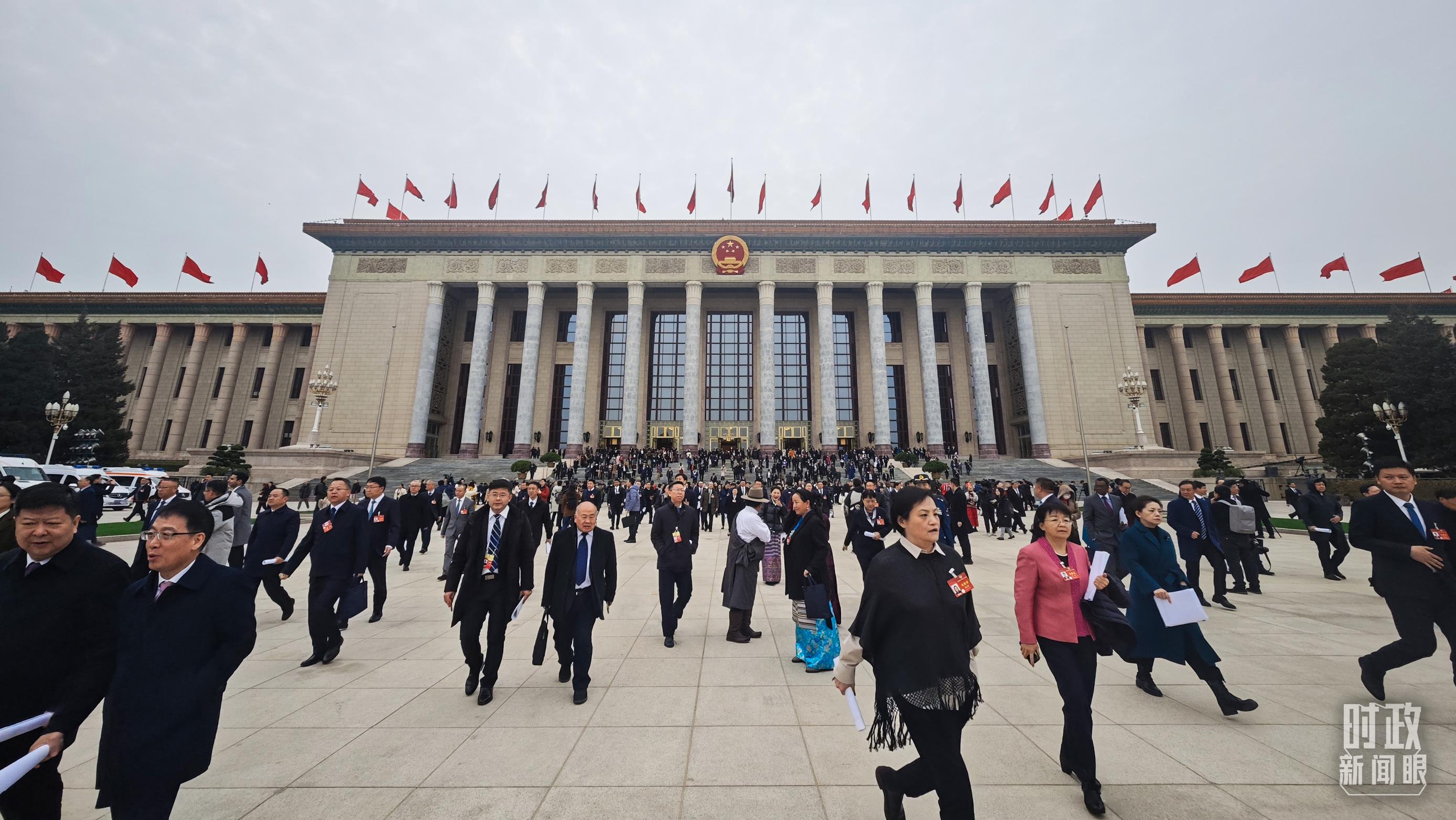 △3月4日,人民大會(huì)堂,政協(xié)委員們在開幕會(huì)后離場。(總臺央視記者彭漢明拍攝)