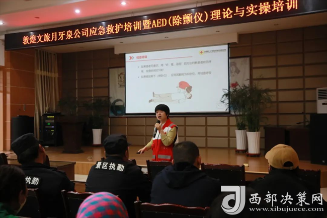 西部決策網(wǎng)訊 (記者帥華鋒 通訊員 田雅杰)保障游客的生命安全是景區(qū)一線從業(yè)者的責(zé)任與義務(wù)。3月21日下午,由敦煌市衛(wèi)健局、敦煌紅十字會、敦煌市醫(yī)院聯(lián)合開展的“博愛敦煌·“救”在身邊”應(yīng)急救援培訓(xùn),走進鳴沙山月牙泉景區(qū)。旨在提升景區(qū)全體一線人員的急救意識與變通能力,搶抓黃金4分鐘,挽救心臟驟停患者的寶貴生命。